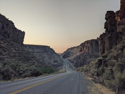 We took a long, flat, boring drive through Nevada and coasted into a lovely little dispersed site after crossing into Idaho. Our drive into the campsite was surreal - after hours traversing the desert, our GPS counted down the minutes to our site as we meandered through farmland. Just as I was fearing we'd end up in someone's backyard, we turned a corner and descended into a stunning rock canyon, the setting sun illuminating the towering upper spires. We turned down a little side road to a lovely and quiet little dispersed site. It felt like we were in a calm, lush nook, tucked away from the world.