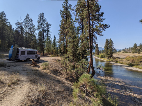 It was a sincerely perfect day - started with an amazing morning in a hot spring, enjoyed a nice afternoon hike, finished it all off with pizza and cocktails. At this point, we were both really starting to wonder if we wanted to ever leave Idaho. And to top it all off, we continued to have wonderful luck with finding stunning dispersed campsites. From quiet riverside spots, complete with firepits, to efficient pull offs under snow-capped mountains, to our favorite private creekside spot under the Harvest Moon, we really had a hard time considering leaving here. I was absolutely blown away by every gorgeous campsite we had the absolute pleasure of finding.