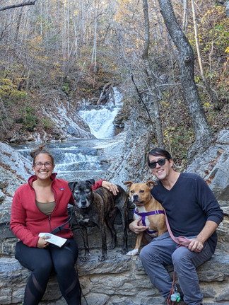 We continued our journey through the Appalachian region of Virginia, stopping at the Falls of Dismal for a night. We had planned to stay here for a few days to enjoy the last stretches of dispersed camping and slow bus living, but the site we found was pretty hilly and uneven, so we opted for just one night. And then on our way out, we got totally stuck! Coming down the hill, the angle was too severe and our back hitch got a little stuck in the road, which caused our tires to spin out in the mud. Because of this, heading back up the hill to straighten out wasn’t an option, no matter how many sticks we tried to wedge under our wheels. We resolved to try to power through backing our way down, so we dug out our hitch a little bit and with one last push, we made it down! Since we were right near the Falls of Dismal, it would have been silly to skip the 0.01 mile hike down to see the falls, and it was well worth the sojourn. It’s always a pleasant surprise when we find a spot for a peaceful overnight that also gives us some bonus natural beauty.