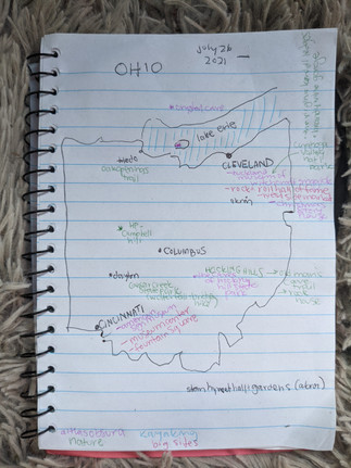 We typically will look for places along a particular route - if our next confirmed destination is Kansas City, we'll plug it into Google Maps and take a look at what's along the way. We'll decide if we want to break up longer stretches with a few planned pit stops or if we want to get some miles behind us. Once we've found a place that checks off a few of our needs, like filling our various tanks, providing some activities and a place to sleep, we can add it to our calendar. We usually keep our schedule in pencil and paper so we can improvise and make changes as we deem necessary. We try to keep a decent weekly plan while also leaving room for improvisation, detours, and random roadside fun!